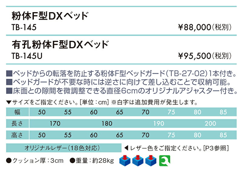 TB-145U 有孔粉体F型DXベッド ベッドからの転落を防止する粉体F型ベッドガード(TB-27-02)1本付き。