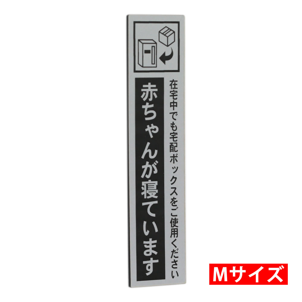 宅配ボックス案内 赤ちゃんが寝ています シルバー タテ型 (30×130mm) ポスト投函 メール便(ネコポス)送料無料 あす楽対応/在宅中でも宅配BOXをご使用ください コロナ対策 非対面 宅配BOX案内プレート 印刷シールではないレーザー彫刻 ポイント消化/楽天スーパーSALE