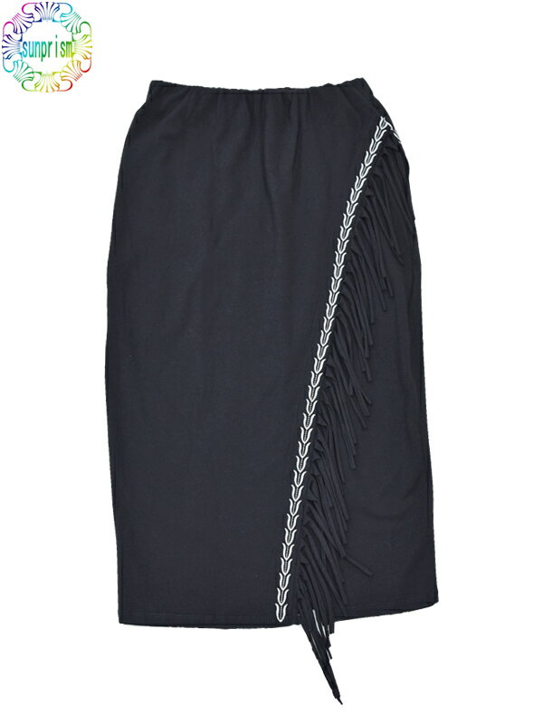 タイト スカート ブラック M S163 フリンジ ラップ風 スカート コットン 綿 ボトム【あす楽対応】 BOTTOMS