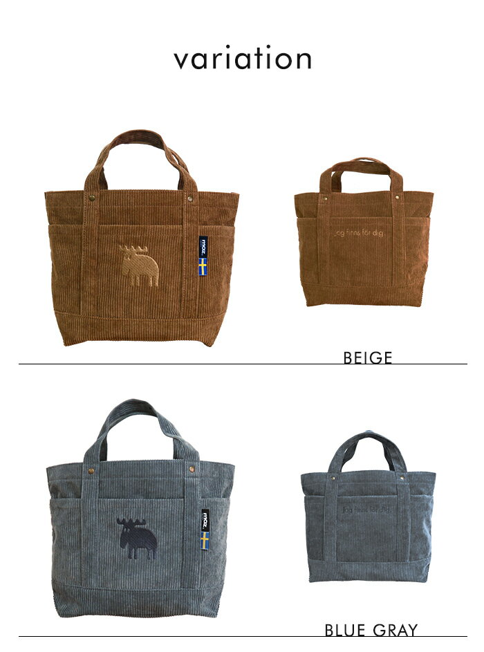 商品スペック 特長 北欧ブランド「moz」のエルクがデザインされたコーデュロイ素材のトートバッグ。